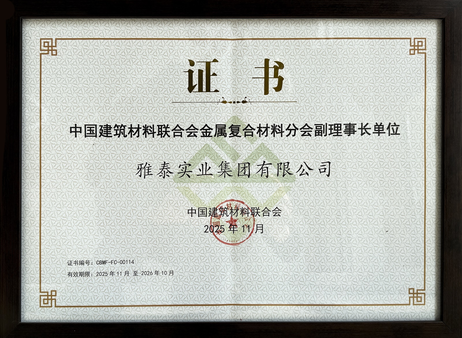 同時(shí),雅泰實(shí)業(yè)集團(tuán)作為幕墻行業(yè)優(yōu)秀的國內(nèi)老字號(hào)品牌,也長年擔(dān)任著中國建筑材料聯(lián)合會(huì)理事、金屬復(fù)合材料分會(huì)副理事長等角色。