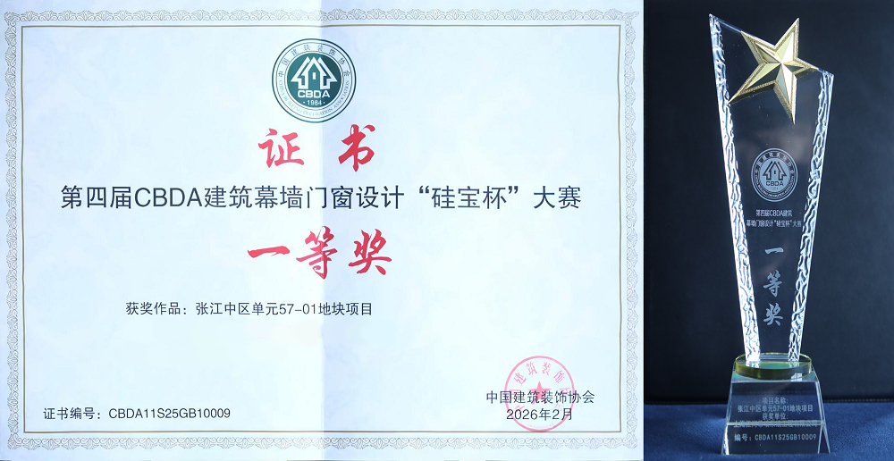 張江中區(qū)單元57-01地塊項(xiàng)目榮獲第四屆CBDA建筑幕墻門窗“硅寶杯”設(shè)計(jì)大賽一等獎(jiǎng)
