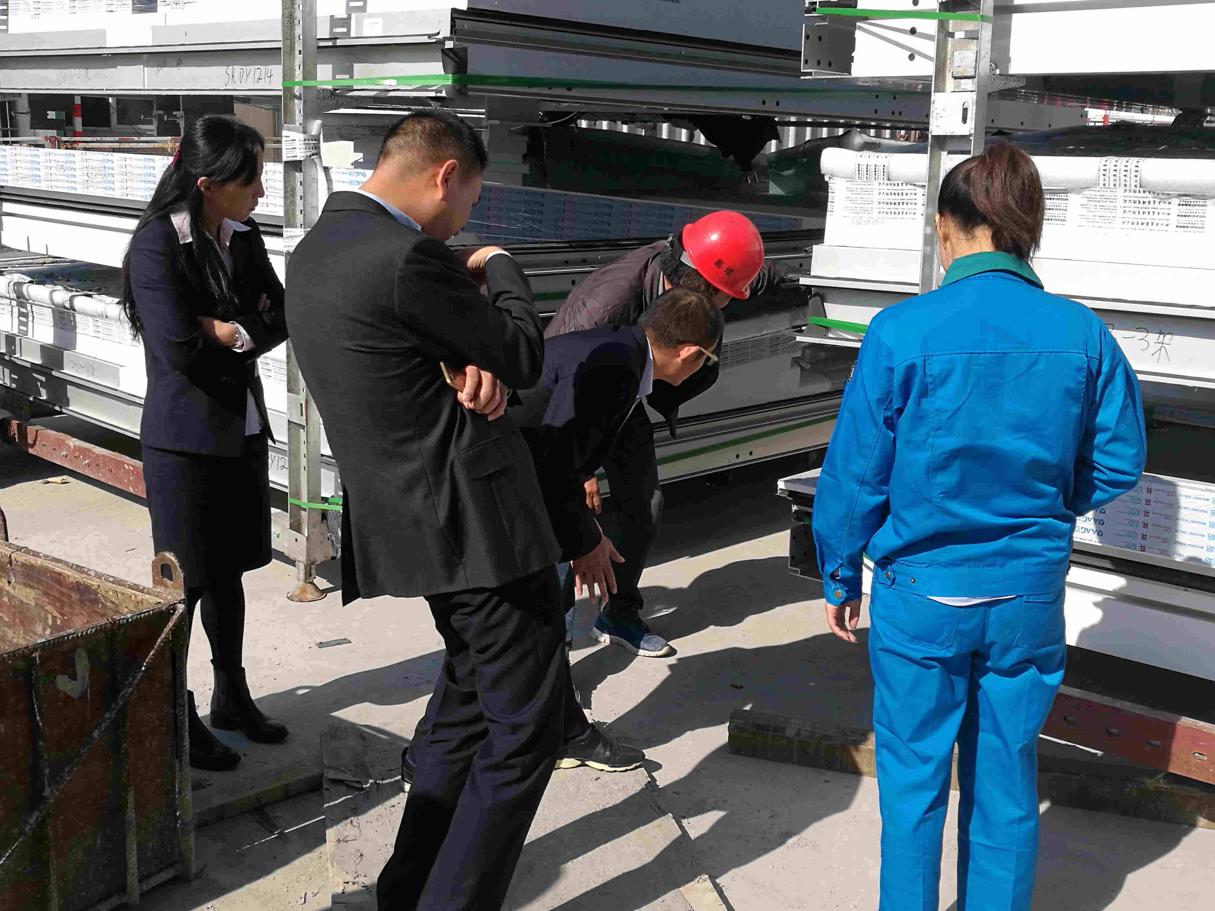 陳董事長一行每到一處,便詳細了解工程概況、供貨進度、產品質量及甲方訴求情況,對已送至現(xiàn)場的產品進行檢視,對已上墻的產品詢問施工技巧和難度,在現(xiàn)場與幕墻施工方進行了深入的交流探討。