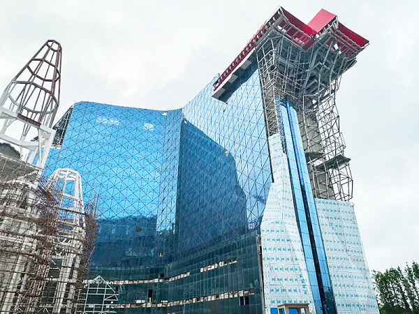 雅泰集團承建上海臨港冰雪北區(qū)幕墻整體制作及建設,本項目為菠蘿面異形設計,充滿現(xiàn)代感的外立面,把冰雪世界的晶瑩閃耀充分展現(xiàn)。與之相匹配的鋁幕墻板的結構復雜,加工難度較大,全異型、超大、超寬、超長鋁板,多數(shù)板長6-7米,且角度尖銳精度要求非常嚴格。面對高難度重點工程,雅泰集團快速成立項目攻艱突擊隊,選調(diào)管理、設計、加工精英,結合理解冰雪項目設計特點,最大程度達成設計師初衷。加工團隊對異型板件進行優(yōu)化拆解,分件加工,再進行一體化工廠組裝集成。同時集團擁有行業(yè)內(nèi)體量、規(guī)模均在前列,全長700米的進口先進噴涂設備,充分滿足超大、超長、超寬鋁板的氟碳漆面噴涂完成。