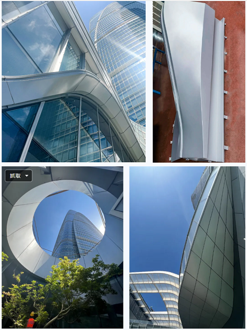 該項目幕墻系統(tǒng)繁多,施工難度大,制造工藝要求極高。南裙樓幕墻共計27個幕墻系統(tǒng),雅泰集團負責(zé)其中的金屬幕墻供材,幕墻構(gòu)造上選擇的是框架式鋁板幕墻。