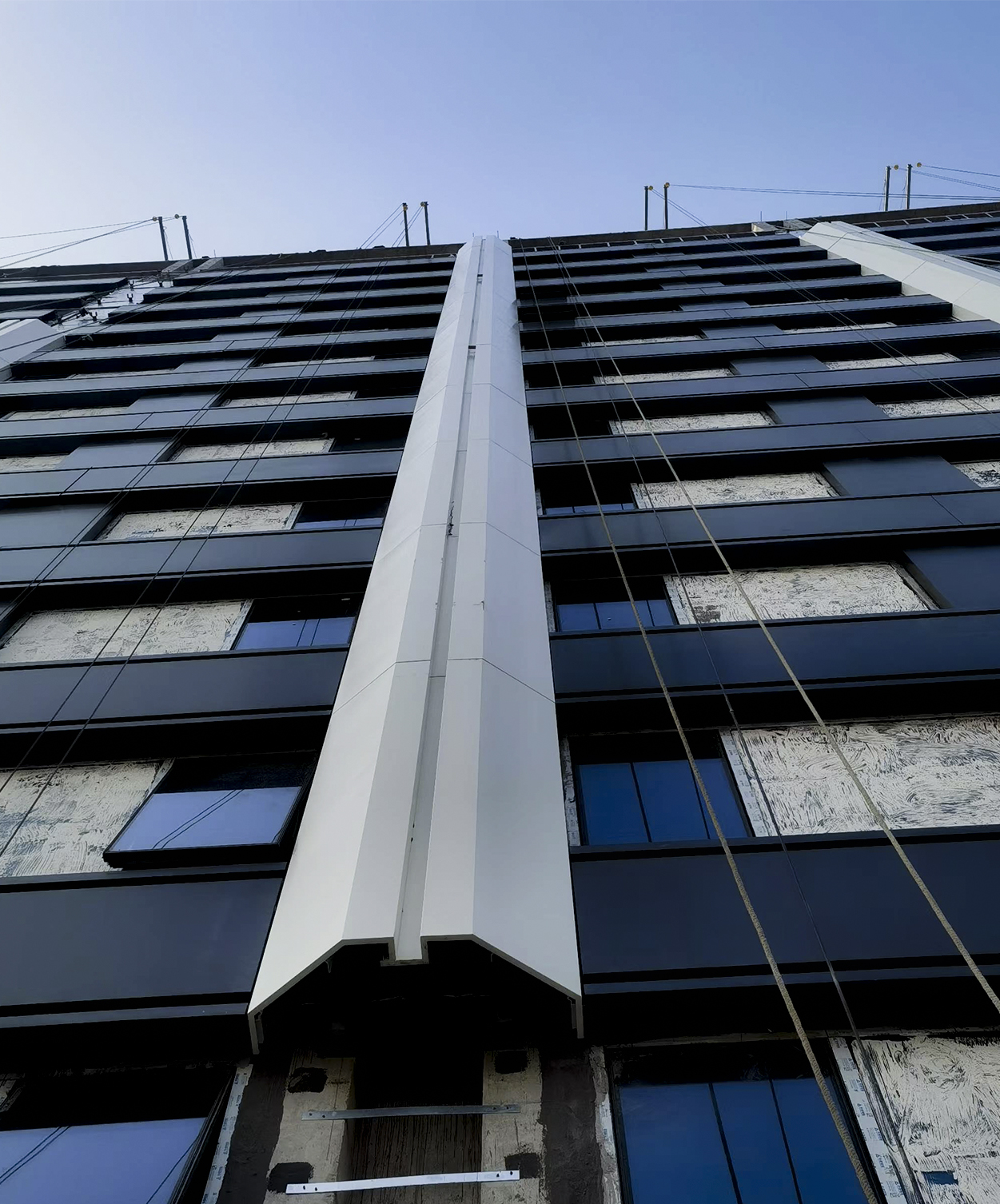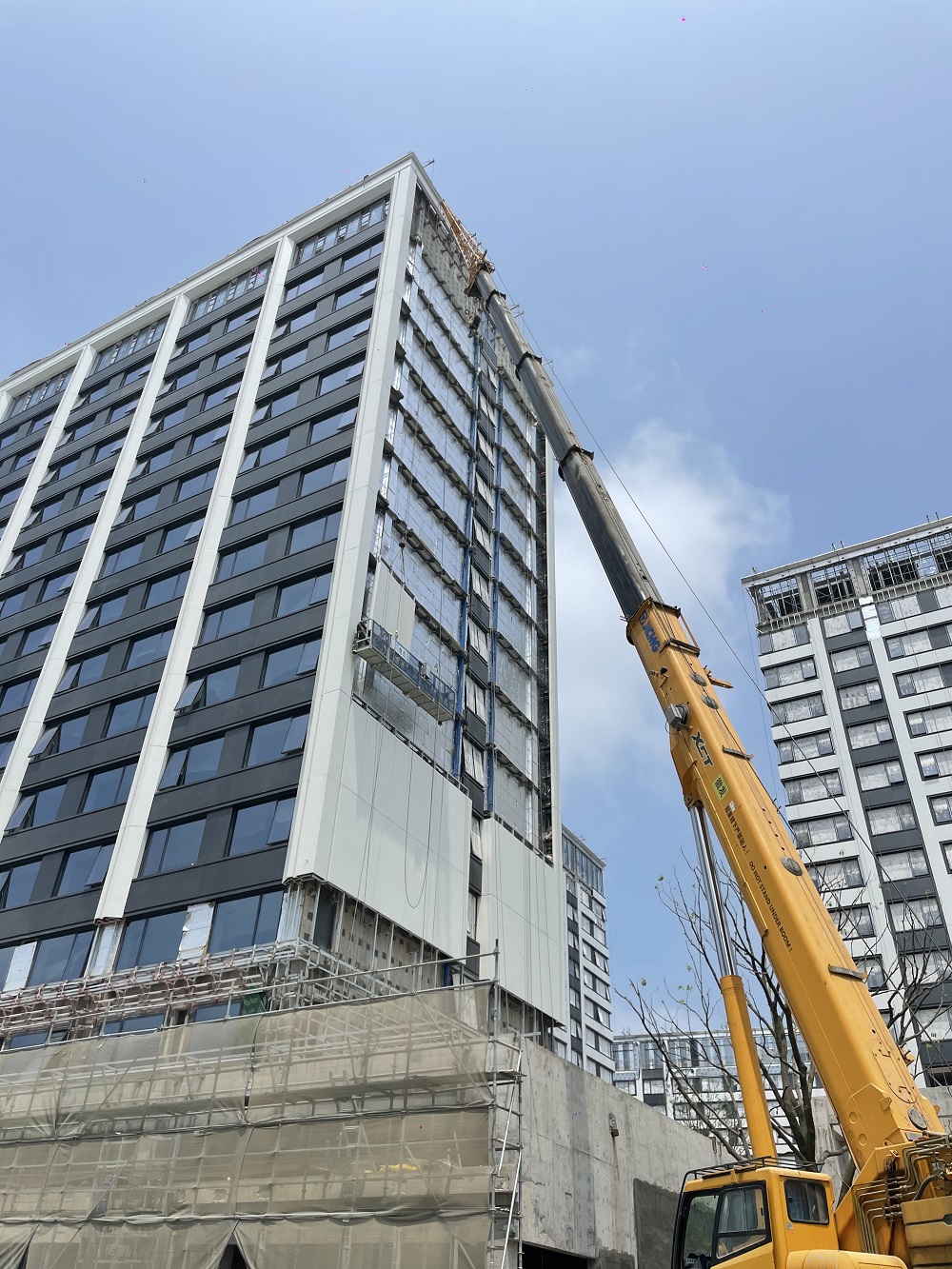 為保障幾萬名研發(fā)人員的生活配套,緊鄰華為研發(fā)中心的上海西岑單身公寓項目目前也基本完成。項目包含35棟單體建筑和1棟短租式公寓,公寓進度非常迅速,外墻采用了高效集成的裝配式單元金屬幕墻系統。裝配式幕墻污染少、節(jié)能環(huán)保,可減少90%以上的建筑垃圾 。同時由于裝配式幕墻二次結構已施工前置,所以相對傳統結構安裝,工期會提前10%-15%。